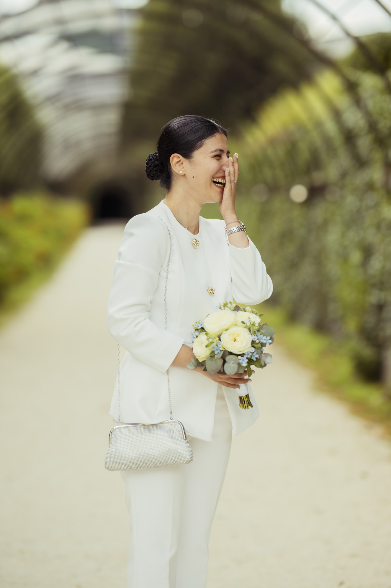 Ihre standesamtliche Trauung im Marmorsaal von Schloss Mirabell war ein Mix aus Eleganz, Emotion und internationalem Flair. Der historische Saal mit seiner barocken Architektur bot die perfekte Bühne für das „Ja“-Wort – festlich, stilvoll und doch mit ganz viel Leichtigkeit.
